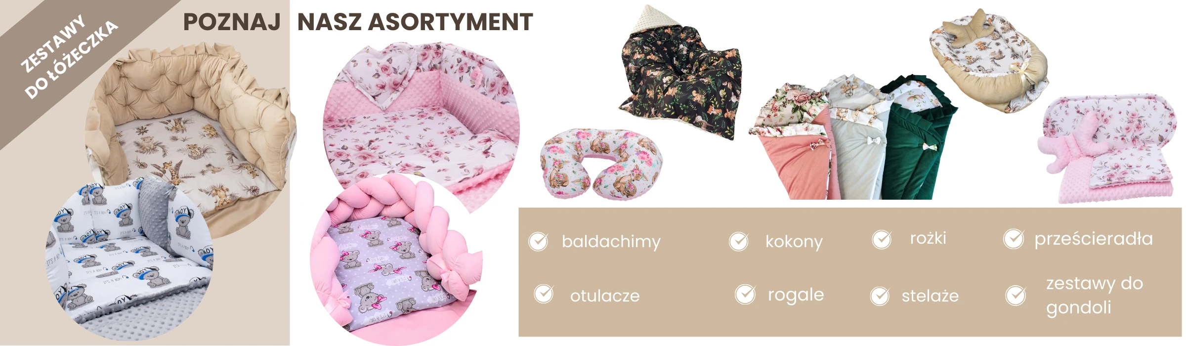 Jesteśmy dumnym producentem różnorodnych wyprawek dla niemowląt. Naszym celem jest zapewnienie najwyższej jakości produktów, które zarówno spełniają potrzeby rodziców, jak i dzieci. W naszym asortymencie znajduje się szeroki wybór artykułów, które zapewniają komfort i bezpieczeństwo dla niemowląt i małych dzieci, takich jak: zestawy do łóżeczek i zestawy do gondoli, kokony, otulacze czy rożki.