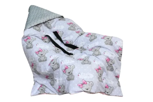 Otulacz do nosidełka z kapturkiem to miękki, i bezpieczny produkt który zapewnia dziecku wygodę i ochronę podczas przenoszenia,