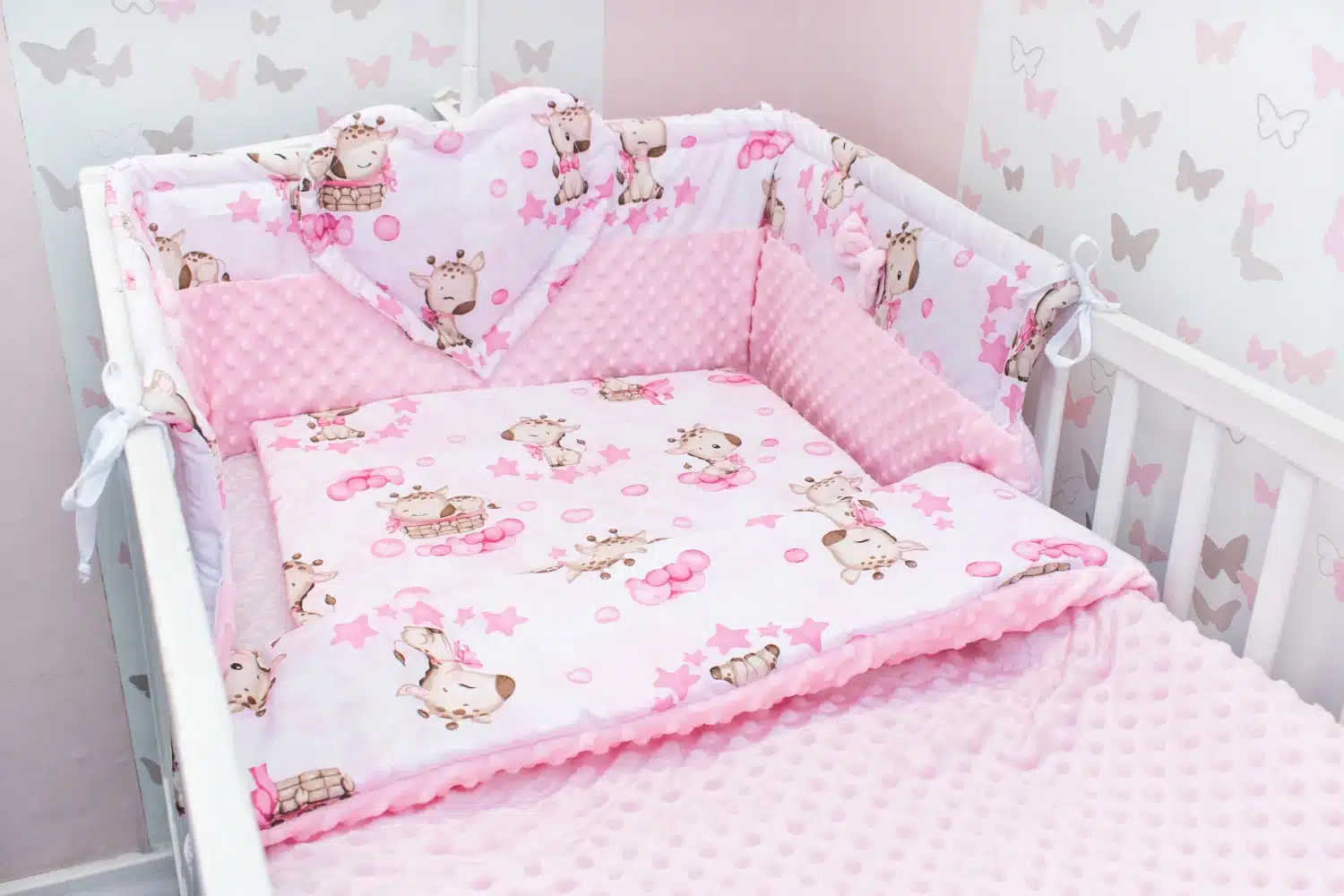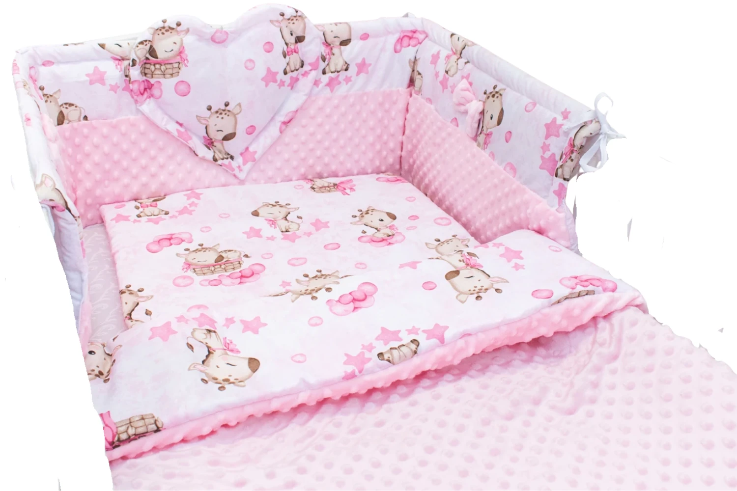Możliwość zamiany ochraniacza z sercem lub poduszek na warkocz pod wzór kompletu do łóżeczka.